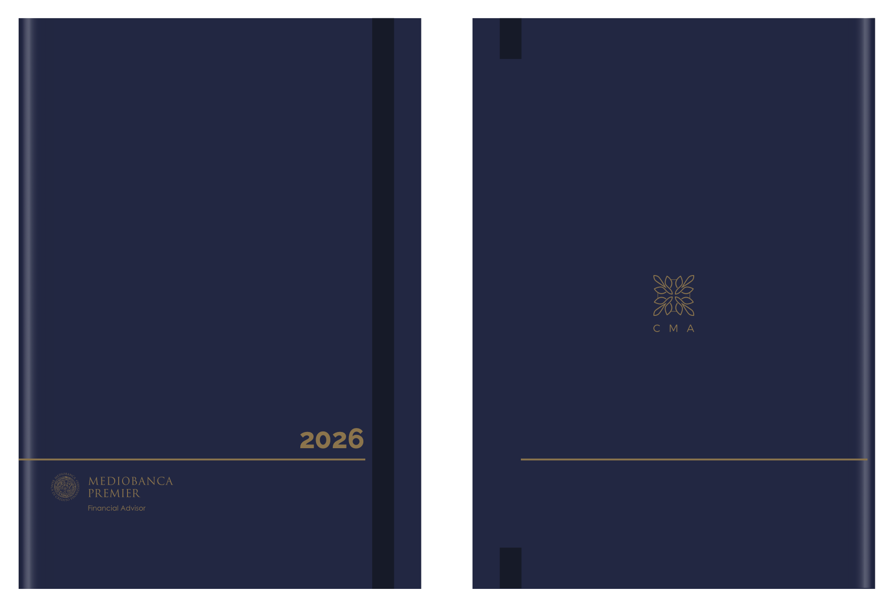 Agenda Formato copertina 15x21 cm con grafica Speciale prodotta in esclusiva dal Brand Camera Maestranze Artigianali per Mediobanca Premier.